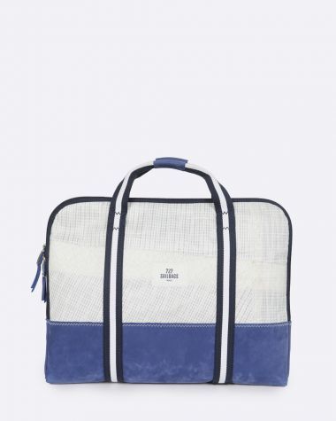 Kantosalkku on valmistettu 100 % kierrätetystä purjeesta ja sinisestä nahasta laukun pohjassa. Laukun pääliosassa on vetoketju sulkemista varten. Olkaimet ja olkahihna ovat puuvillaa ja kahva nahkaa.