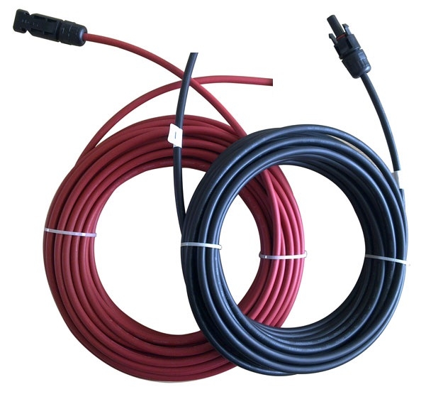 8 m pituiset musta ja punainen 6 m2 kaapelit aurinkopaneelin kytkentään vesitiiviillä MC4 liittimillä