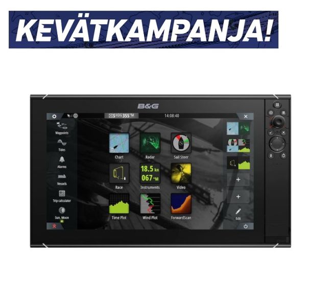 - B&G purjehdusominaisuudet kuten SailSteer, Leikkarit, RacePanel ja muut kilpailuominaisuudet