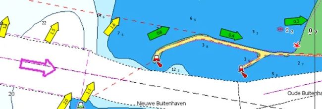 Vuorovedet ja virtaukset -toiminto näyttää vedenkorkeuden vaihtelut ja vuoroveden suunnan, mikä auttaa suunnittelemaan päiväsi vesillä – olitpa veneilemässä, kalastamassa tai purjehtimassa.