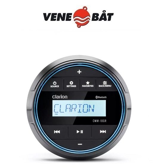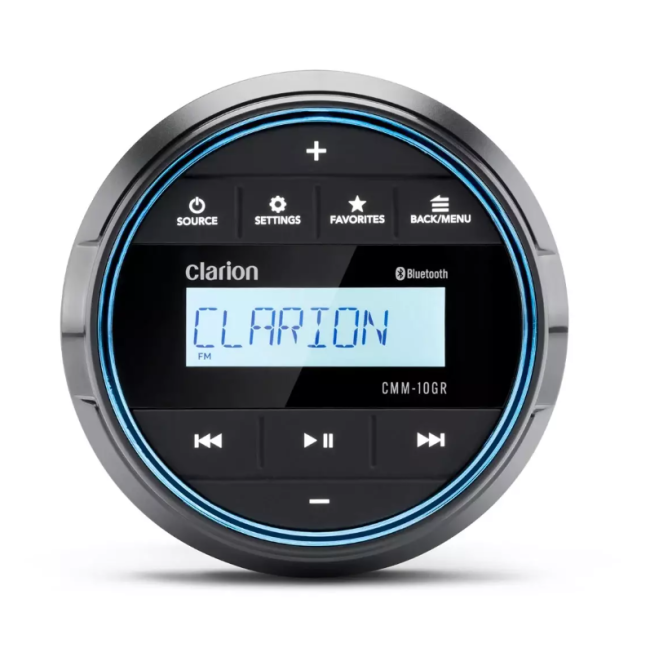 Clarion CMM-10GR on kestävä ja kompakti merisoitin, joka on suunniteltu erityisesti veneilyolosuhteisiin. Se tarjoaa selkeän LCD-näytön, intuitiivisen käyttöliittymän ja monipuoliset toistovaihtoehdot – mukaan lukien Bluetooth®-suoratoisto, USB-toisto ja FM/DAB+ -radio. Soitin sopii täydellisesti 3" mittaripaneeliasennukseen ja sulautuu saumattomasti veneen kojelautaan.