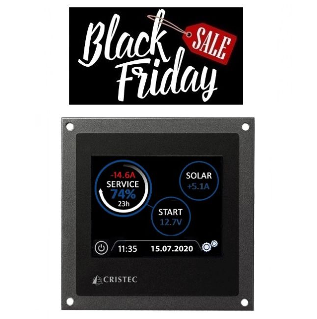 CRISTEC akkumonitori on suunniteltu esittämään akkujen latauksen tilaa, jännitettä, latausvirtaa, lämpötilaa sekä varausmäärää. Järjestelmä pystyy esittämään jopa kolmen eri akuston tilaa yhtäaikaisesti 12 V tai 24 V järjestelmässä. Jokainen akusto vaatii oman shuntin joita saa lisävarusteena. Vakiona kakkosakuston jännitteen näyttö ilman lisäshuntteja.