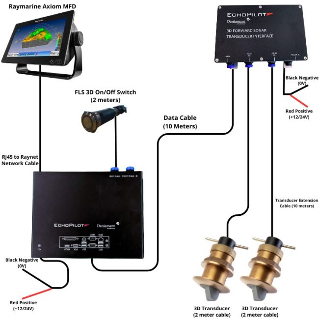 FLS 3D on suora integrointi Raymarine Axiom -näyttöihin ja se on helppo liittää raynetiin RJ45-Raynet-kaapelilla. Kun yhteys on muodostettu, EchoPilot-sovellus ilmestyy Axiom-näytölle, jolloin käyttäjät voivat nähdä eteenpäin katsovan kaikuluotaimen näytöllään reaaliajassa. Näyttöä voidaan käyttää myös jaettuna äärimmäisen mukavuuden saavuttamiseksi, silloin se tarjoaa yhdenaikaisen merikarttojen katselun ja eteenpäin katsovan luotaimen. Täysin kolmiulotteisessa värinäytössä, kun FLS 3D on yhdistetty Axiom-näyttöön, käyttäjät hyötyvät 3D-kuvan täydestä 360 asteen käännettävyydestä kosketuksen avulla sekä zoomaustoiminnosta. Tämä antaa tarkemman kuvan siitä, miltä merenpohjan maasto näyttää ja mahdolliset vaarat näkyvät reaaliajassa.