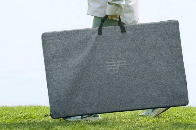 Kestävistä ja joustavista materiaaleista valmistettu kannettava aurinkopaneeli sopii erinomaisesti verkon ulkopuolella asumiseen ja matkustamiseen. Sen monikerroksinen rakenne tarjoaa suuren iskunkestävyyden karua ulkoilmaa varten, ja 12,7 kg:n keveys merkitsee vaivatonta kantamista leirintäalueelle. Kantokoteloon upotettu jäykkä kerros suojaa paneelia vääntymiseltä, kun sitä kuljetetaan tai säilytetään.