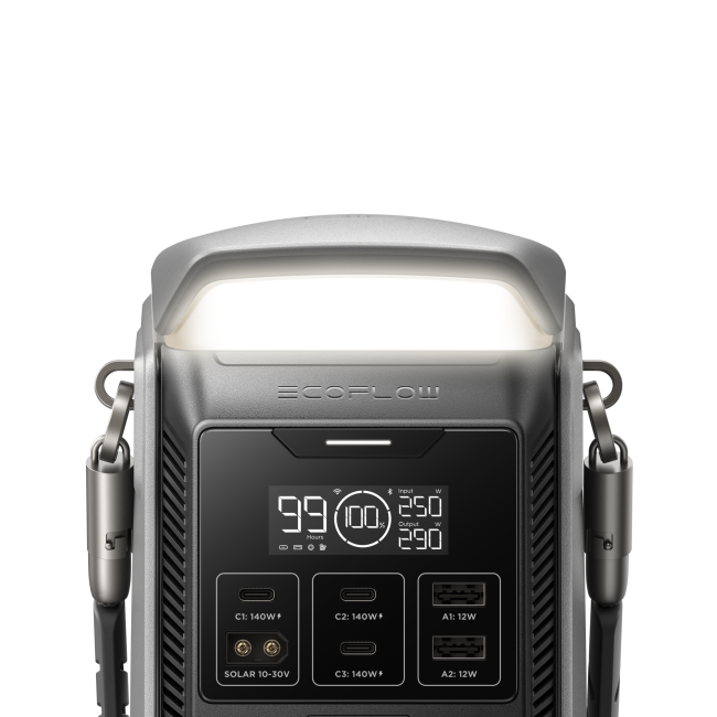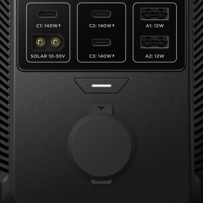 - Liitännät: 2 x USB-A 12W, 3 x USB-C 140W, 1 x tupakansytytinliitäntä, 1 x XT60 aurinkopaneelinliitäntä