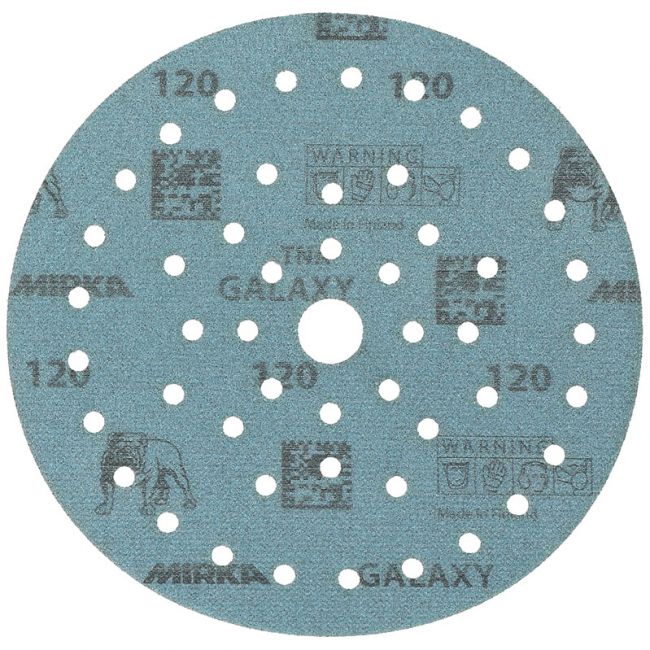 Mirkan uudessa, innovatiivisessa Galaxy -hiomatuotteessa yhdistyvät itseteroittuvan hiomajyvän ansiosta tehokkuus ja pitkä käyttöikä. Tukkeutumista estävän pinnoitteen ja uuden Multifit™-reikäkuvioinnin ansiosta monikäyttöinen Mirka Galaxy soveltuu sekä pehmeiden että kovien materiaalien ja useiden eri pintojen hiontaan.