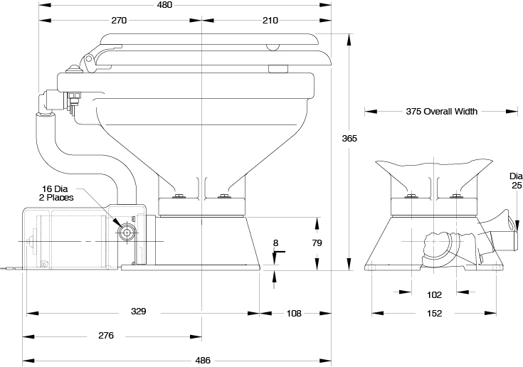 Pumppu koostuu keskipakopumpusta, jossa on terä tyhjentämistä varten ja impelleripumpusta veden täyttämistä varten. WC toimitetaan painonapilla paneeliasennusta varten, ja molemmat pumpputoiminnot toimivat samanaikaisesti niin kauan kuin painiketta pidetään painettuna, huuhtelu ja tyhjennys.