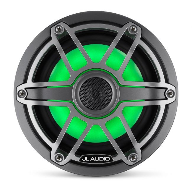JL Audio 6.5" M6-650x kaiutinpari titaaninvärisellä Sport-ritilällä ja aseharmaalla rungolla sekä LED-valaistuksella