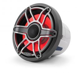 JL Audio 8.8" M6-880x kaiutinpari titaaninvärisellä Sport-ritilällä ja aseharmaalla rungolla sekä LED-valaistuksella