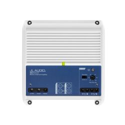 Tässä venevahvistimessa on tyylikkäät valkoiset ja harmaat pulverimaalipinnat, tiivistetty kansi säätimille ja ruostumattomasta teräksestä valmistetut muut osat jotka kestävät meriympäristöä.