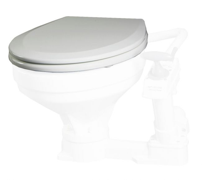Pehmeästi sulkeutuva muovinen istuin AquaT™ Manual Compact -käymälään.