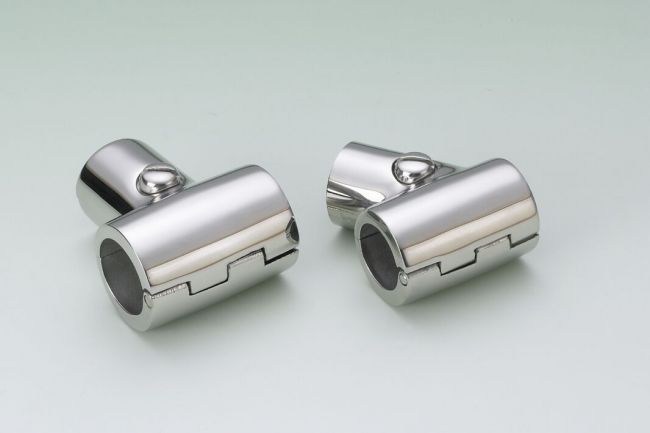Kaidehela ruostumatonta terästä, 60° putkihela. Avattava, kolme ruuvia sisältyvät hintaan. Ø 7/8' -putkelle.