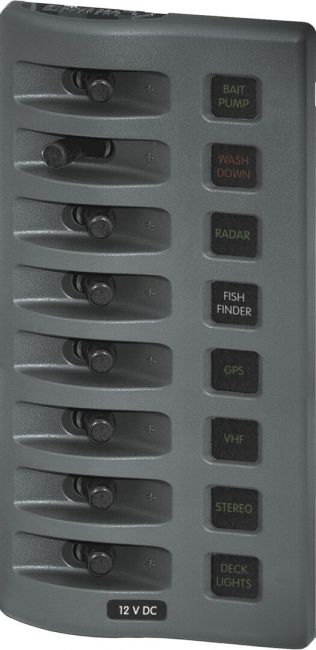 WEATHERDECK® 12V DC VESITIIVIS SULAKEPANEELI - HARMAA - 8-PAIKKAINEN