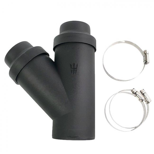 Lämminilma 3-tie jakajasarja, mitat: 75/60 mm. Valmiina kaksi 60 mm ulostuloa.