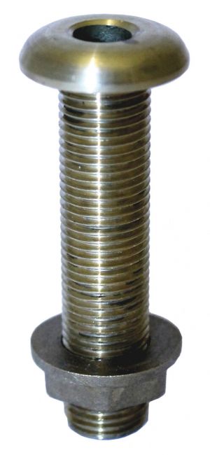 Läpivienti messinkiä, R-kierre 1”, pituus laipan alapuolelta 60 mm.