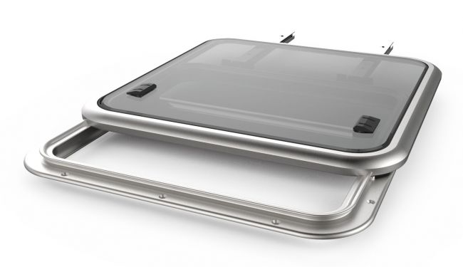 Lewmar Pilot Hatch valkoinen, koko 70. Moottoriveneeseen erinomainen kattoluukkuratkaisu. Luukku liukuu kiskoilla, voidaan lukita auki- ja kiinniasentoon. Lukitaan pitkällä salvalla sisäpuolelta. Luukku tulisi asentaa tasaiselle pinnalle, maksimitoleranssi +/- 1 mm. Luukkua ei voi avata ulkopuolelta. Käyttötarkoitus ainoastaan ohjaamon tai hytin katossa, ei sovellu käytettäväksi kannella. Akryyli-ikkunan paksuus 10 mm. CE-hyväksytty.