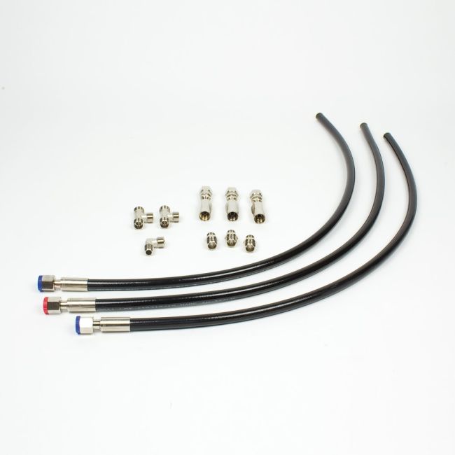 - Hydrauliletkuissa on vain toisessa päässä tehtaalla prässätyt liittimet, joten letkut on helppo lyhentää sopiviksi ja lisätä itse mukana tulevat helpostiasennettavat hydrauliliittimet toiseen päähän