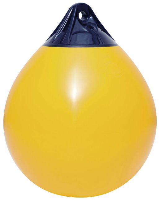 Keltainen muovi, sininen vahvistettu kiinnitysosa. Pituus 500 mm, halkaisija 390 mm, köysi max. 25 mm, kantokyky 32 kg.