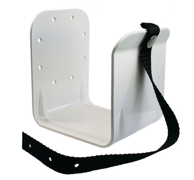 Hevosenkenkärenkaalle, kaiteeseen tai seinään kiinnitettävä, pulverimaalattua alumiinia, nailonkiinnike