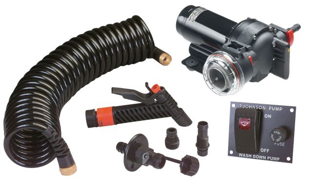 Aqua Jet WD 20 l/min pesupumppusarjassa on kaikki tarvittava: Aqua Jet 5.2, 5 bar korkeapainepumppu, PUMProtector™ sihtisuodatin, pesupistooli, sulkuventtiilillä varustettu letkuyhde seinään, 7,5 metriä spiraalimaista pesuletkua, valaistu kytkinpaneeli sulakkeineen, kaikki yhdessä paketissa.
