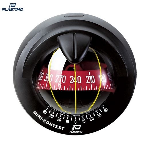 Helppolukuinen Plastimo Mini-Contest kompassi alle-9m purjeveneisiin. Taustavalaistu (12V) ja punaisella ruusu varustettu.