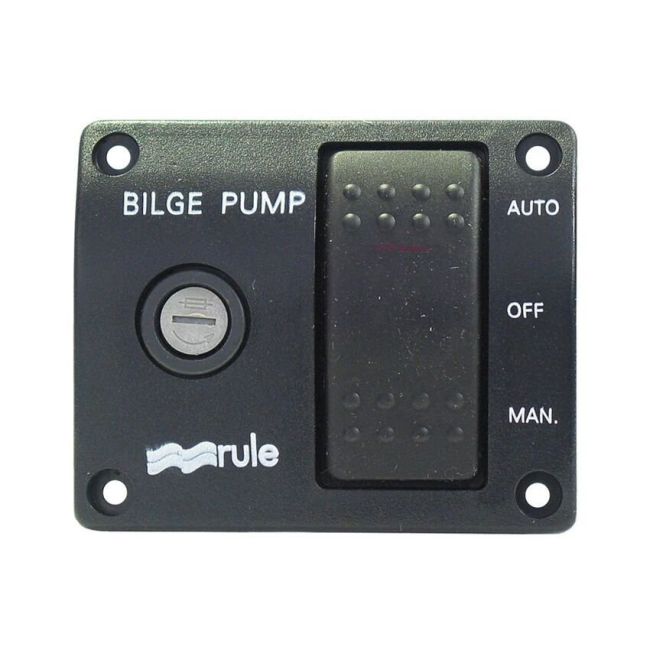 Rule ohjauspaneelissa on kolmiportainen kytkin automaatti- ja käsikäyttötilaa varten. Merkkivalo palaa, kun pumppua käytetään käsikäytöllä. Sulake on helposti vaihdettavissa paneelin etupuolelta.