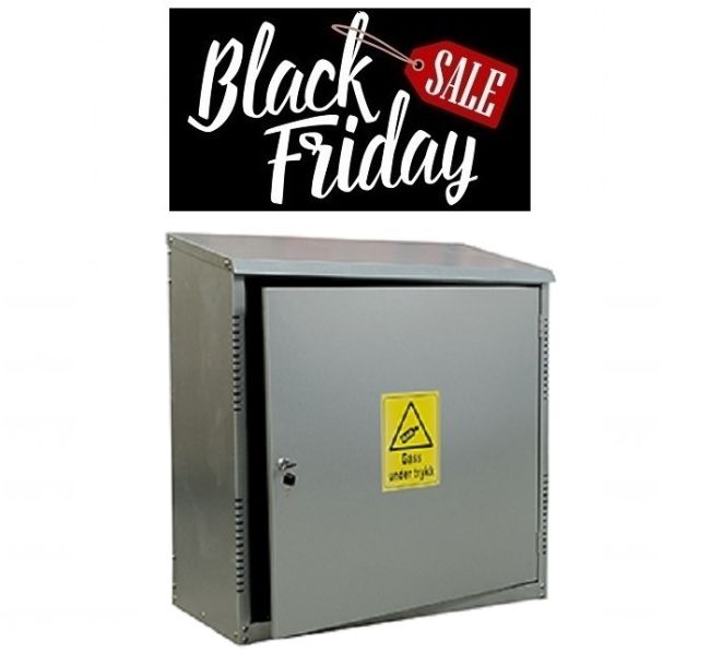 Galvanoidusta teräksestä valmistettu laadukas säilytyskaappi kaasupulloille. Tämä on turvallisin tapa säilyttää nestekaasua kotona tai mökillä.
