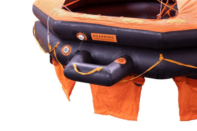 Heijastinnauha: Varustettu huomiovärisellä SOLAS-hyväksytyllä heijastinnauhalla kuomussa ja lautan pohjan alapuolella.