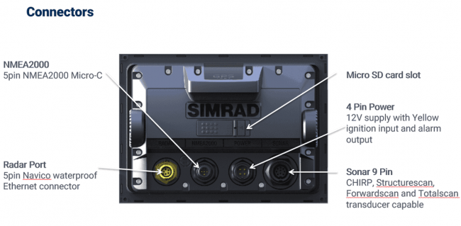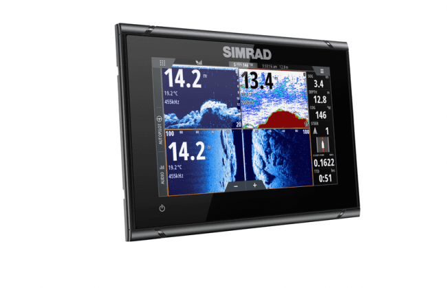 Simrad GO -sarja on suunniteltu etenkin nopeissa moottoriveneissä käytettäväksi. Laitteessa on erityinen ajokarttanäkymän sivu, jossa tärkeät navigointitiedot ja kartat näkyvät kätevästi samassa näytössä.