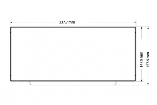- Leveys 337,72 mm, korkeus 147,85 mm, syvyys 88,49 mm