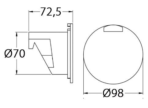Suihkupakkaus painikekäyttöisellä suihkulla. Muovinen suihkuosa. Uppoasennettava valkoinen UV-suojattu ASA-kotelo, letku 2,5 m.