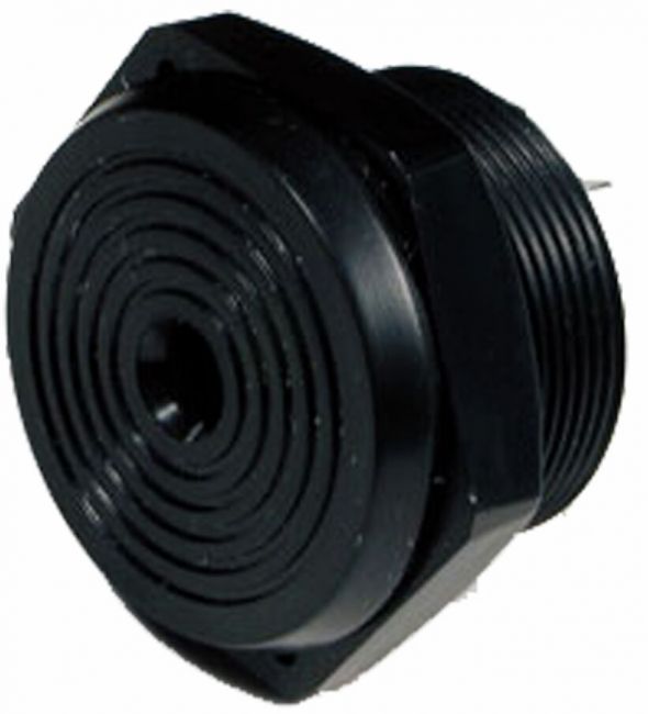 Paneeliin asennettava muovinen summeri. Yksinkertainen, mutta tehokas, 98 dB:n äänentason tuottava summeri paneeliasennukseen.