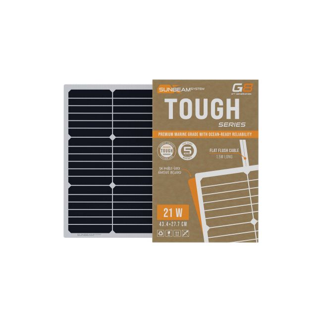 SUNBEAMsystem on jo yli vuosikymmenen ajan edistänyt merenkulun aurinkopaneelien kehitystä keskittyen selkeästi niiden käytännön käyttöön aluksilla. Tough G8 on ydinmalli kaikille, jotka haluavat korkean hyötysuhteen, pitkän käyttöiän ja puhtaan, korkealaatuisen ulkonäön – ilman että heidän tarvitsee siirtyä Performance-tasolle.