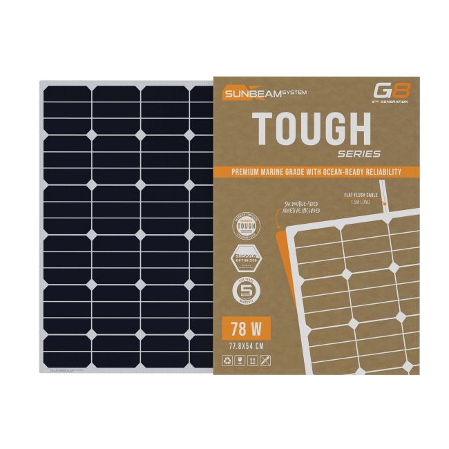 SUNBEAMsystem on jo yli vuosikymmenen ajan edistänyt merenkulun aurinkopaneelien kehitystä keskittyen selkeästi niiden käytännön käyttöön aluksilla. Tough G8 on ydinmalli kaikille, jotka haluavat korkean hyötysuhteen, pitkän käyttöiän ja puhtaan, korkealaatuisen ulkonäön – ilman että heidän tarvitsee siirtyä Performance-tasolle.