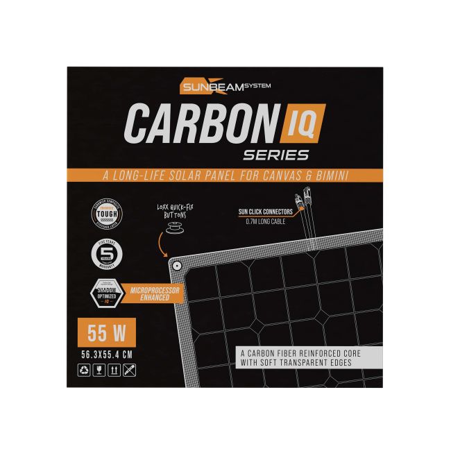 Carbon Quick Fix on erittäin tehokas aurinkopaneeli joka on suunniteltu kiinnitettäväksi kankaaseen. Tough+ -sarjan materiaalit tarjoavat erinomaisen UV-kestävyyden. Hiilikuitu jäykiste estää ennenaikaisen ikääntymisen, joka voi tapahtua pehmeällä paneelilla ilman riittävää tukea. Erityisesti purjehdusyhteisö on aiemmin kokenut erilaisia ongelmia muiden merkkisten isojen aurinkopaneelien kanssa jos ne on asennettu kankaaseen. Carbon mallissa tämä on huomioitu ja paneeli myös tuottaa huikean 116 W maksimitehon sekä se on helppo asentaa kankaan päälle. Hiilikuidun vahvuus/paino suhde on tärkeä koska kangas ei yleensä tue raskasta rannetta. Sen ainutlaatuisten materiaalien ja rakennusteknologian ansiosta tarjoamme paneelille pitkän 5 vuoden takuun.