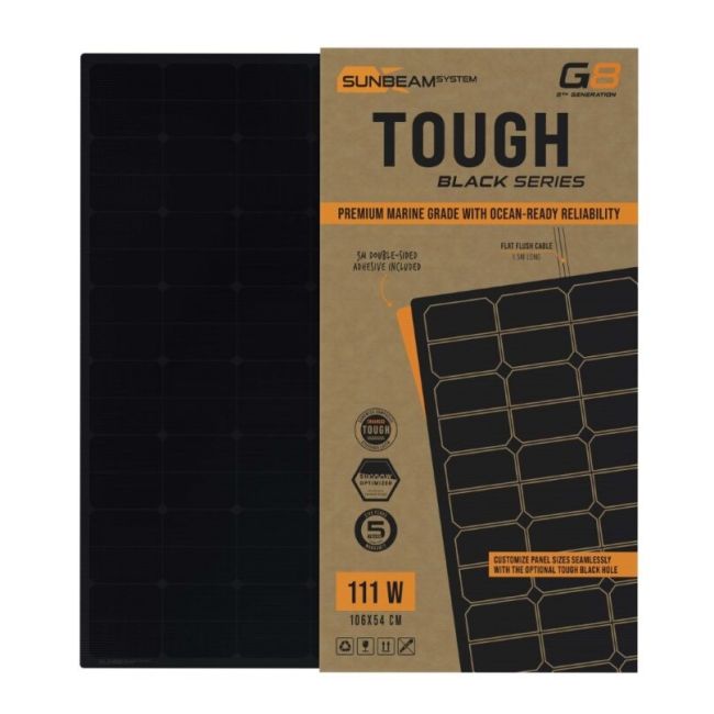 Testivoittajakennoista rakennetuissa, TOUGH Flush-sarjan paneeleissa on erityisen kestävä pinnoite, eikä lainkaan kytkentäboxia paneelin päällä! Sunbeam Systemsin laadukas ja hyvin taipuisa paneeli veneeseen.