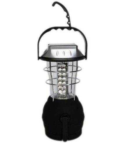 Lyhty 24:lla tehokkaalla LED:llä. Lataus tapahtuu aurinkokennolla tai vaihtoehtoisesti 230V verkkovirralla taikka 12V heikkovirralla (adapteri mukana) tai manuaalisesti. Usb-lähtö esim. kännykän lataamiseen.