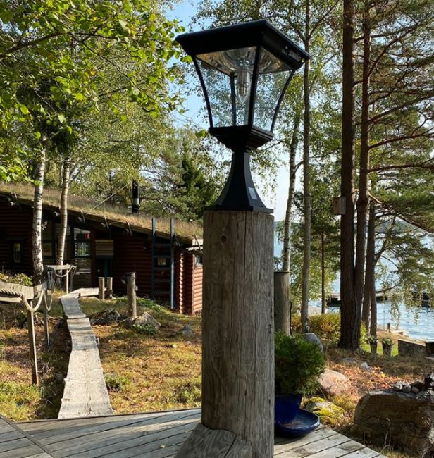 Ulkovalaisin Solar voidaan asentaa esimerkiksi aitauksen tai pylvään päälle. Valaisin valaisee 6-8 tuntia normaaleissa valaistusolosuhteissa.