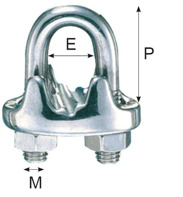 Haponkestävä, vaijerin halkaisija 3 - 5 mm, E=5 mm, M=M4 x 70 mm, P=2/9 mm (min./maks.).