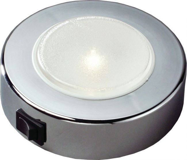 Pinta-asennettava pyöreä valaisin katkaisimella, kromattu kehys, 94G4V LED 8-30 V.