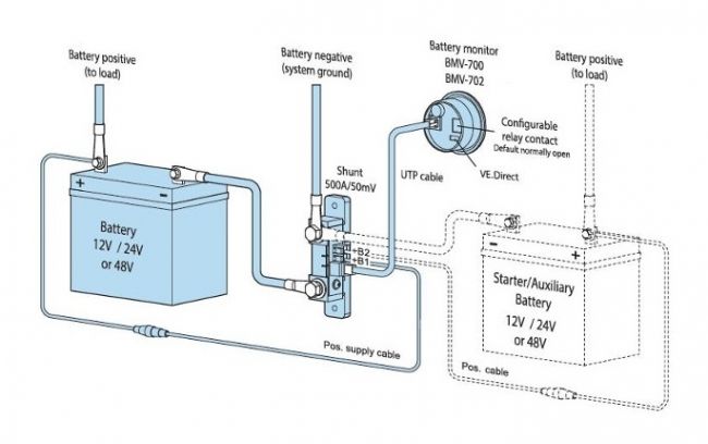 Avoin kosketin on käytettävissä jännitehälytystä varten (yli- ja alijännitteen). Akkumonitori antaa yleiskuvan akkujen tilasta ja elinkaaresta. Mukana tulee 10 metrin kaapeli (RJ12/UTP) ja shuntti. BMV 712:ssa on myös Comport RS232 datan tietokoneeseen siirtoa varten.