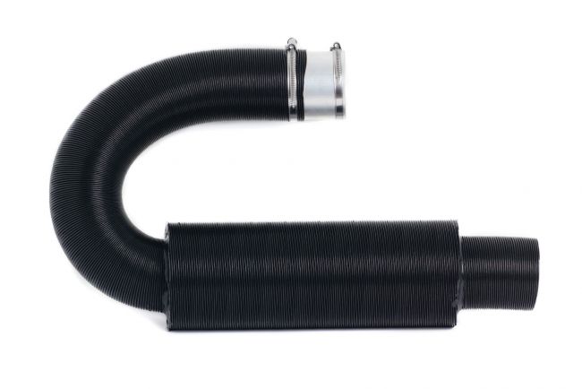 Ilmavirran muodostaman virtausäänen vaimennin diesel-lämmittimiin. Suosittelemme erityisesti äänenvaimentimien käyttöä 30 Dt:ssä ja 40 Dt:ssä, jossa lämminilmaletkuveto on alle 2 metriä. Imuletkujen eristäminen vaimentaa myös erittäin tehokkaasti ilmanvirtausääntä. Äänenvaimennin leikkaa noin 6 dB ääntä, joka vastaa äänenvoimakkuuden puoliintumista ja äänen paineen pienenemistä neljäsosaan.