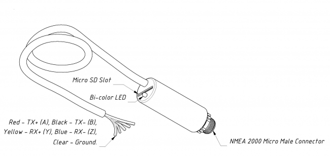 Laitteessa on yksi NMEA 2000 liitin ja NMEA 0183 portti lähetys- ja vastaanottolinjoilla. NMEA 0183 portin datanopeus on konfiguroitavissa välille 300 - 115200 baud mahdollistaen näin AIS-laitteiden (38400 baud), nopeiden NMEA 0183 multiplexerien ja PC-adaptereiden liittämisen vakio NMEA 0183 laitteiden lisäksi. Sekä RS-232 sekä RS-422 standardin NMEA 0183 liitännät on tuettuna. Yhteensopiva myös tietokoneiden sarjaporttien sekä USB/Sarjaportti-adapterien kanssa.